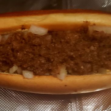 Our famous homemade chili dog is a classic favorite for a long time. Made with mustard and onions topped with our famous old-fashioned homemade chili sauce.